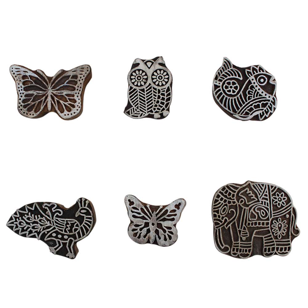 Set of 6 Piece New Mix Wooden Printing Block. Ideal for Using on Fabric, Paper, Canvas, etc. These Blocks can be use to Print with Oil Colors, Fabric Colors, Water Colors, Acrylic Colors and Vegetable Colors.