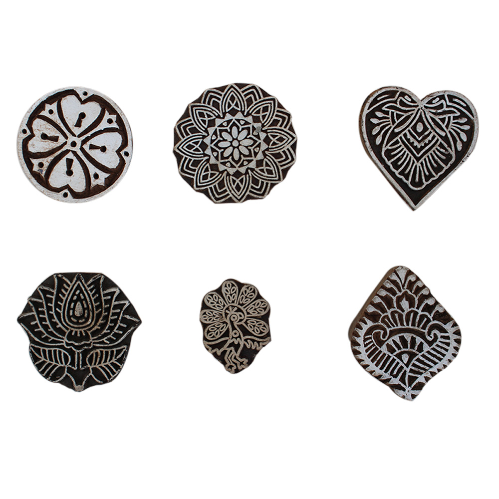 Set of 6 Piece New Mix Wooden Printing Block. Ideal for Using on Fabric, Paper, Canvas, etc. These Blocks can be use to Print with Oil Colors, Fabric Colors, Water Colors, Acrylic Colors and Vegetable Colors.