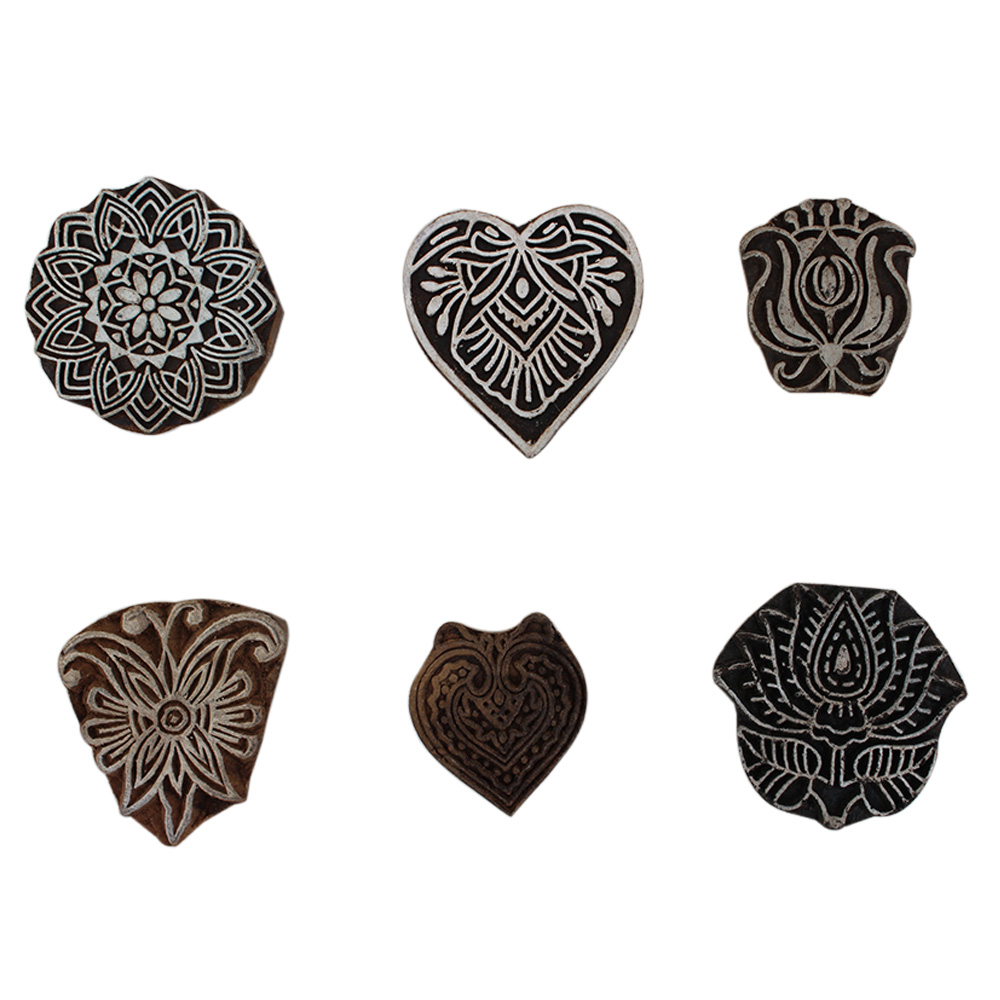 Set of 6 Piece New Mix Wooden Printing Block. Ideal for Using on Fabric, Paper, Canvas, etc. These Blocks can be use to Print with Oil Colors, Fabric Colors, Water Colors, Acrylic Colors and Vegetable Colors.