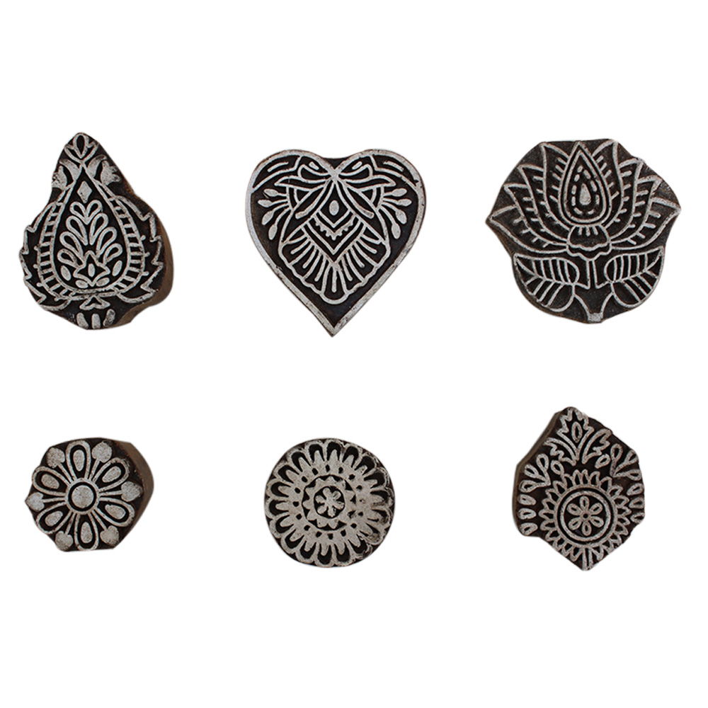 Set of 6 Piece New Mix Wooden Printing Block. Ideal for Using on Fabric, Paper, Canvas, etc. These Blocks can be use to Print with Oil Colors, Fabric Colors, Water Colors, Acrylic Colors and Vegetable Colors.