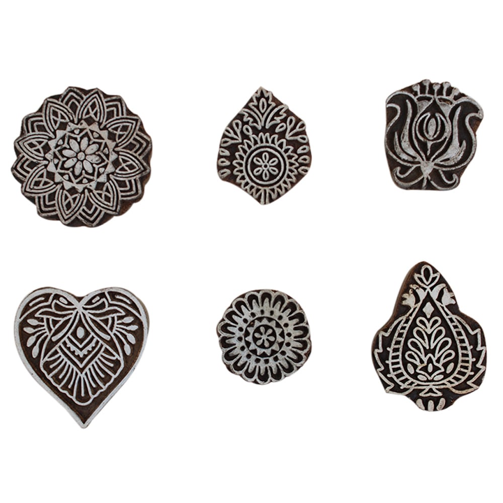 Set of 6 Piece New Mix Wooden Printing Block. Ideal for Using on Fabric, Paper, Canvas, etc. These Blocks can be use to Print with Oil Colors, Fabric Colors, Water Colors, Acrylic Colors and Vegetable Colors.