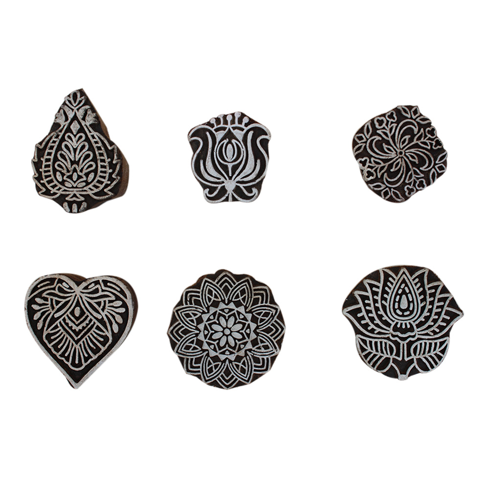 Set of 6 Piece New Mix Wooden Printing Block. Ideal for Using on Fabric, Paper, Canvas, etc. These Blocks can be use to Print with Oil Colors, Fabric Colors, Water Colors, Acrylic Colors and Vegetable Colors.