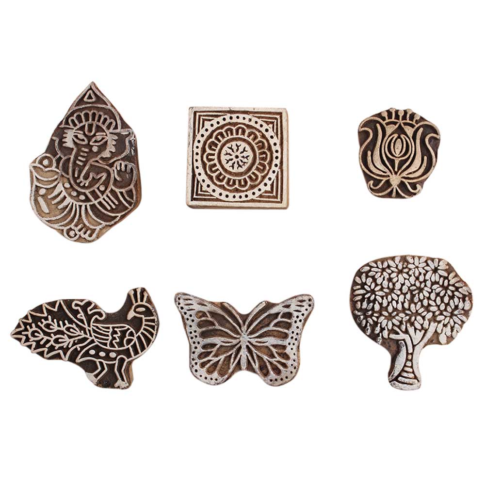 Set of 6 Piece New Mix Wooden Printing Block