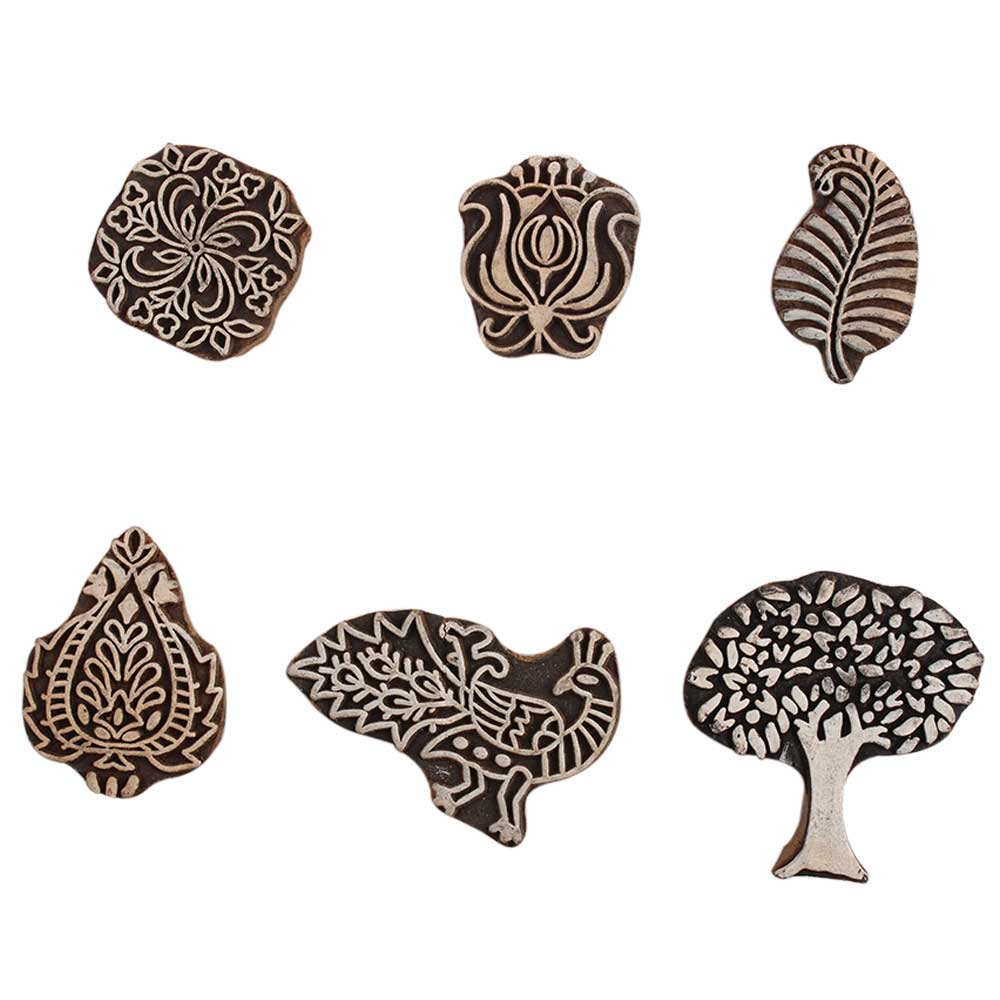 Set of 6 Piece New Mix Wooden Printing Block. Ideal for Using on Fabric, Paper, Canvas, etc. These Blocks can be use to Print with Oil Colors, Fabric Colors, Water Colors, Acrylic Colors and Vegetable Colors.