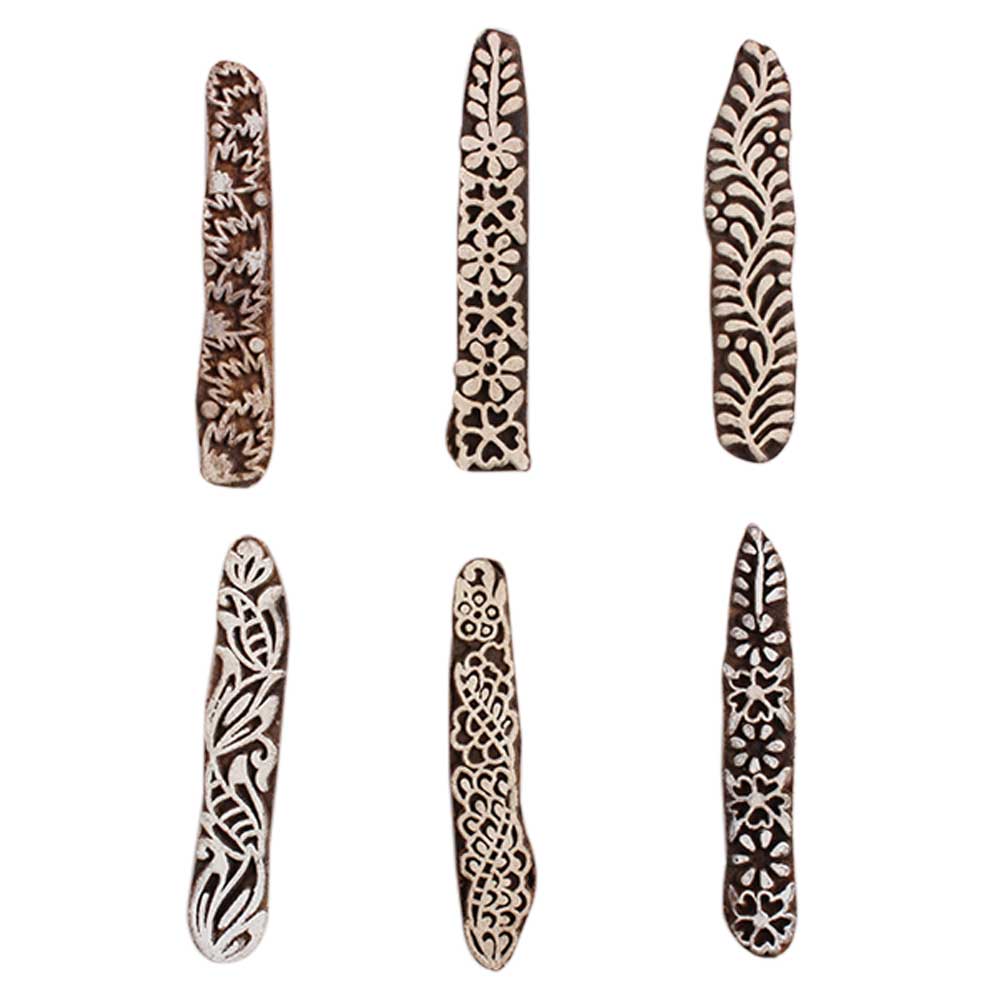 Set of 6 Piece New Mix Wooden Printing Block. Ideal for Using on Fabric, Paper, Canvas, etc. These Blocks can be use to Print with Oil Colors, Fabric Colors, Water Colors, Acrylic Colors and Vegetable Colors.