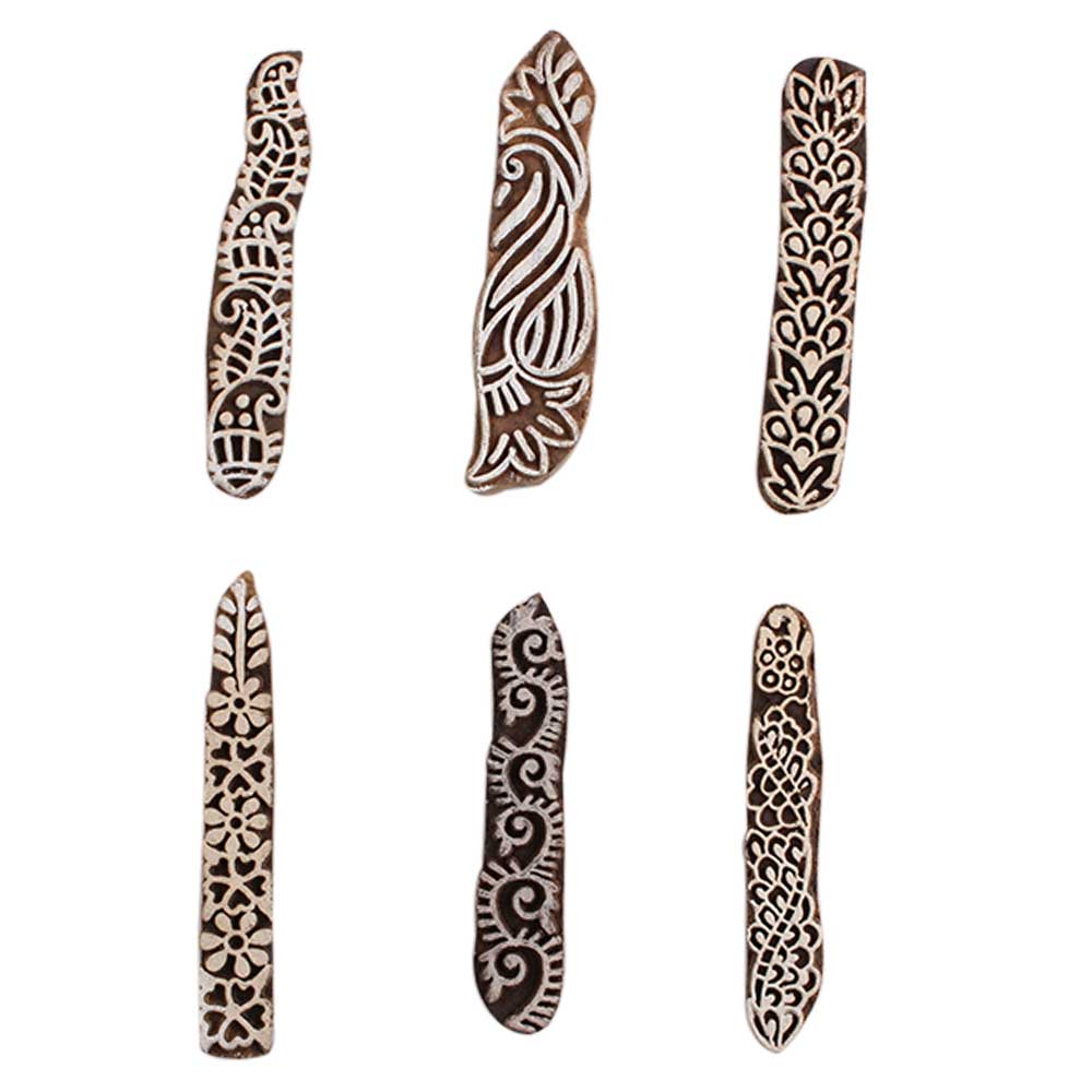 Set of 6 Piece New Mix Wooden Printing Block. Ideal for Using on Fabric, Paper, Canvas, etc. These Blocks can be use to Print with Oil Colors, Fabric Colors, Water Colors, Acrylic Colors and Vegetable Colors.