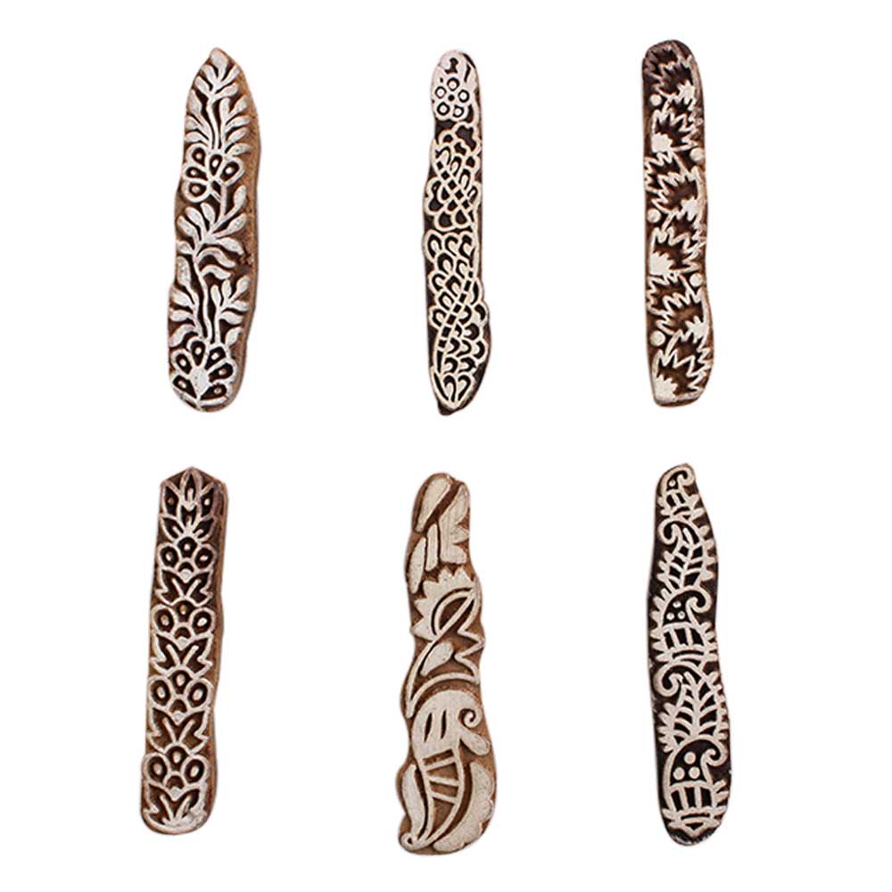 Set of 6 Piece New Mix Wooden Printing Block. Ideal for Using on Fabric, Paper, Canvas, etc. These Blocks can be use to Print with Oil Colors, Fabric Colors, Water Colors, Acrylic Colors and Vegetable Colors.