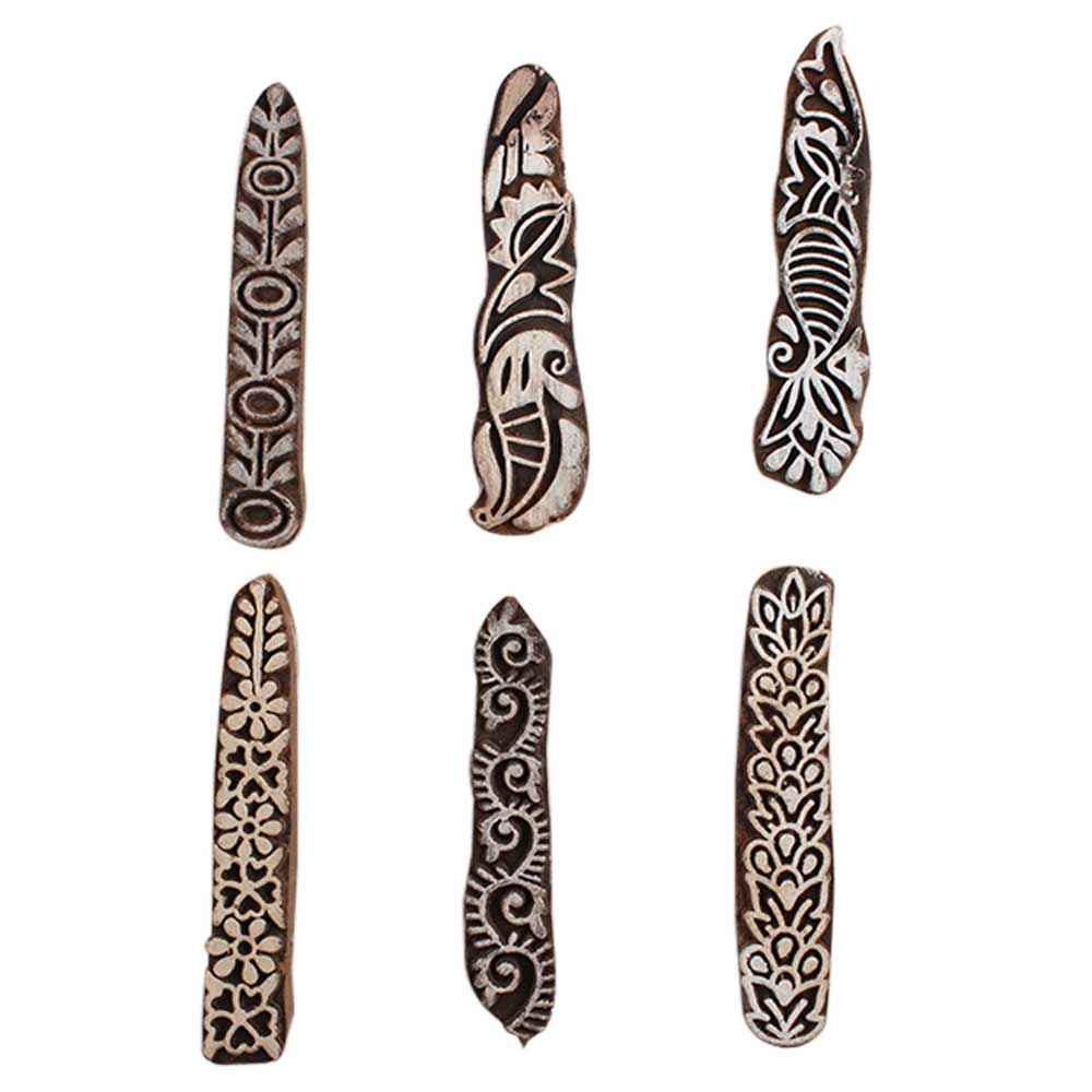 Set of 6 Piece New Mix Wooden Printing Block. Ideal for Using on Fabric, Paper, Canvas, etc. These Blocks can be use to Print with Oil Colors, Fabric Colors, Water Colors, Acrylic Colors and Vegetable Colors.