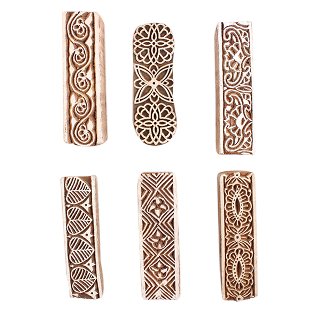 Set of 6 Piece New Mix Wooden Printing Block. Ideal for Using on Fabric, Paper, Canvas, etc. These Blocks can be use to Print with Oil Colors, Fabric Colors, Water Colors, Acrylic Colors and Vegetable Colors.
