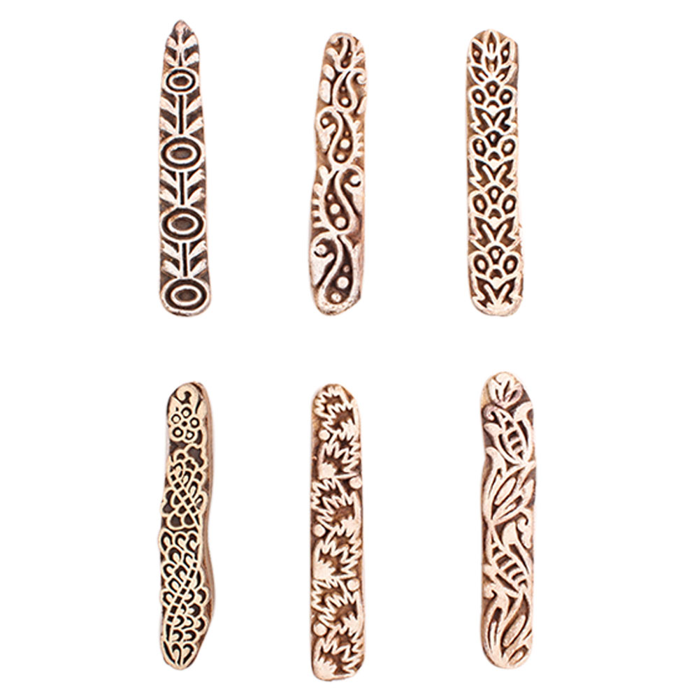 Set of 6 Piece New Mix Wooden Printing Block. Ideal for Using on Fabric, Paper, Canvas, etc. These Blocks can be use to Print with Oil Colors, Fabric Colors, Water Colors, Acrylic Colors and Vegetable Colors.