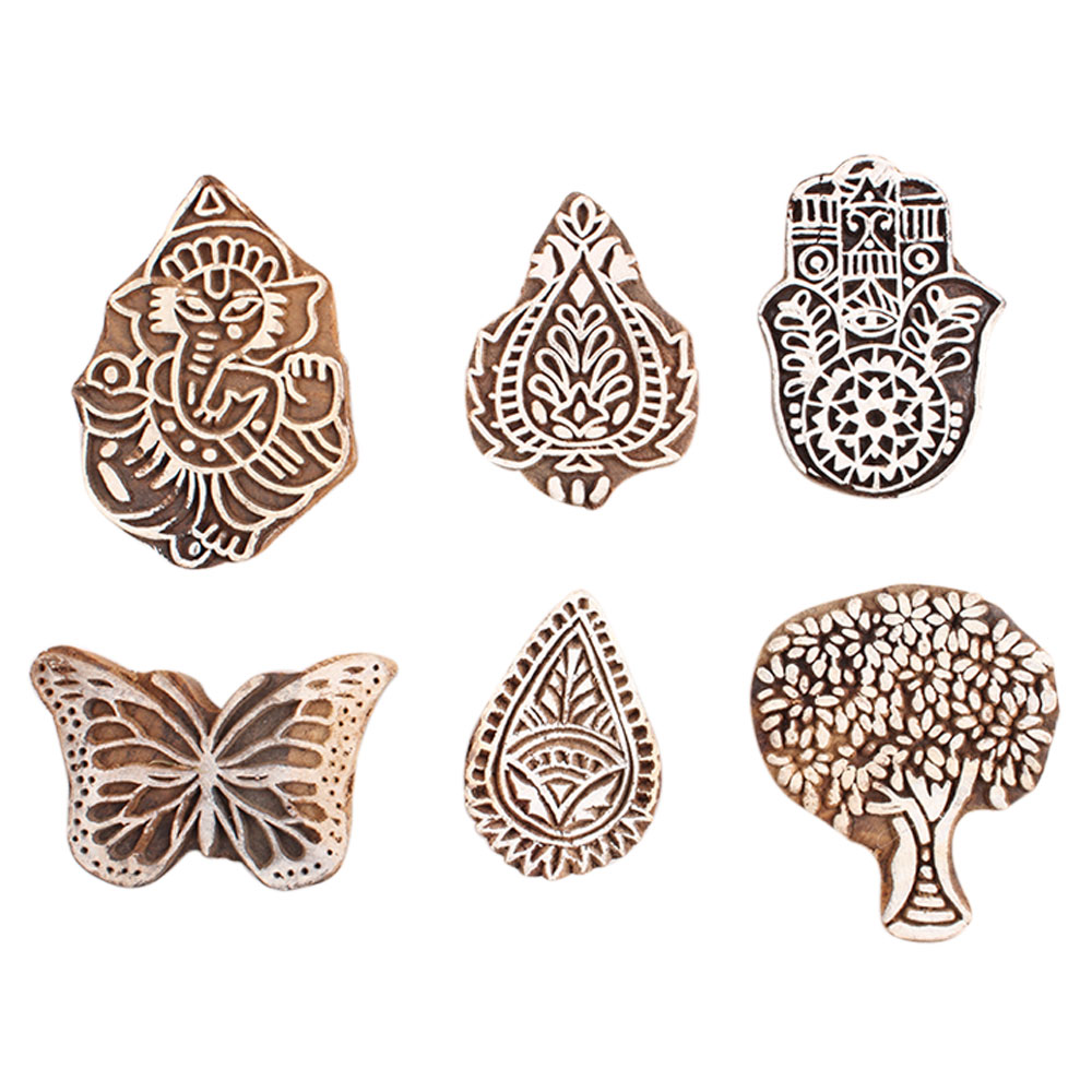 Set of 6 Piece New Mix Wooden Printing Block. Ideal for Using on Fabric, Paper, Canvas, etc. These Blocks can be use to Print with Oil Colors, Fabric Colors, Water Colors, Acrylic Colors and Vegetable Colors.