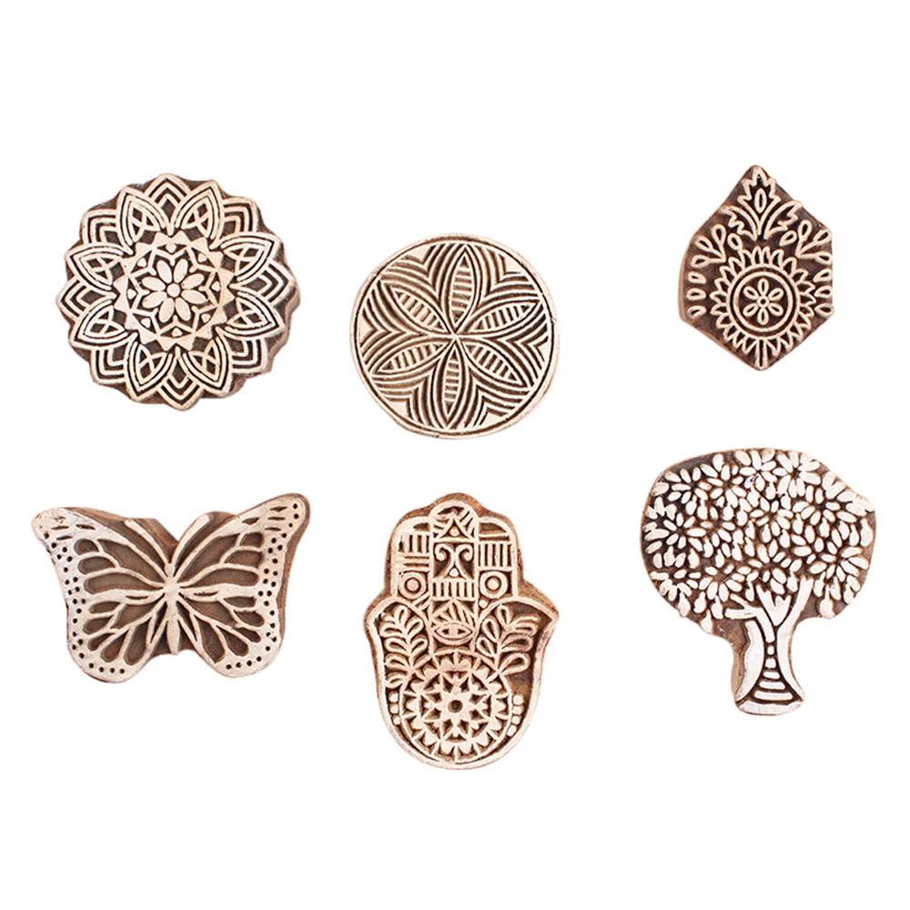 Set of 6 Piece New Mix Wooden Printing Block. Ideal for Using on Fabric, Paper, Canvas, etc. These Blocks can be use to Print with Oil Colors, Fabric Colors, Water Colors, Acrylic Colors and Vegetable Colors.