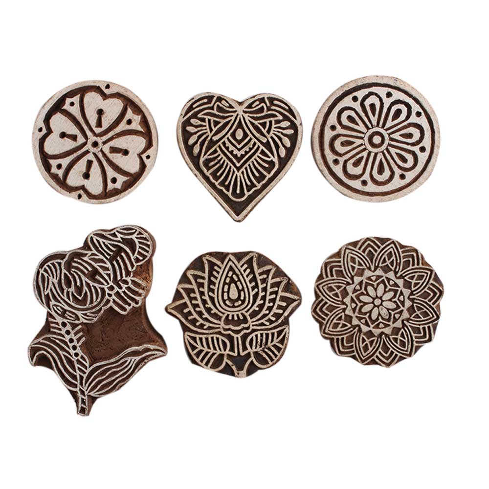 Set of 6 Piece New Mix Wooden Printing Block. Ideal for Using on Fabric, Paper, Canvas, etc. These Blocks can be use to Print with Oil Colors, Fabric Colors, Water Colors, Acrylic Colors and Vegetable Colors.