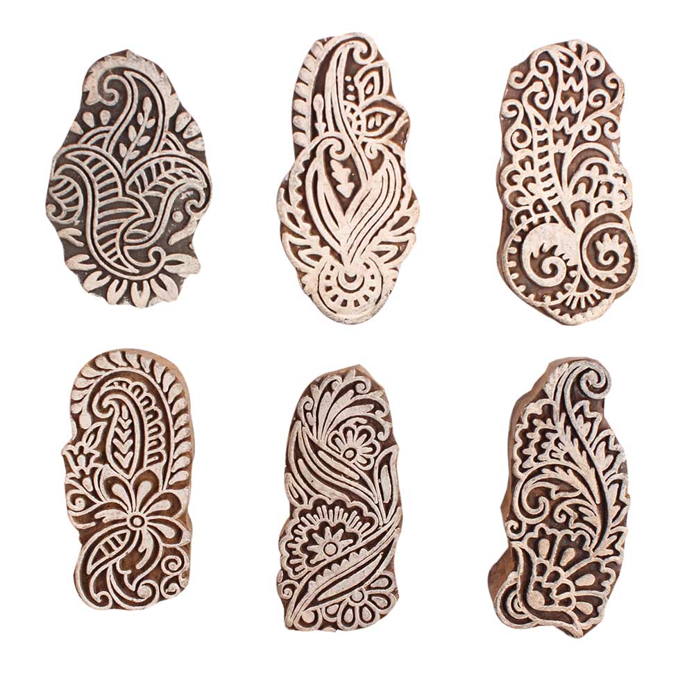 Set of 6 Piece New Mix Wooden Printing Block. Ideal for Using on Fabric, Paper, Canvas, etc. These Blocks can be use to Print with Oil Colors, Fabric Colors, Water Colors, Acrylic Colors and Vegetable Colors.