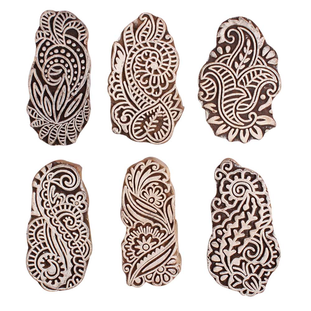 Set of 6 Piece New Mix Wooden Printing Block. Ideal for Using on Fabric, Paper, Canvas, etc. These Blocks can be use to Print with Oil Colors, Fabric Colors, Water Colors, Acrylic Colors and Vegetable Colors.