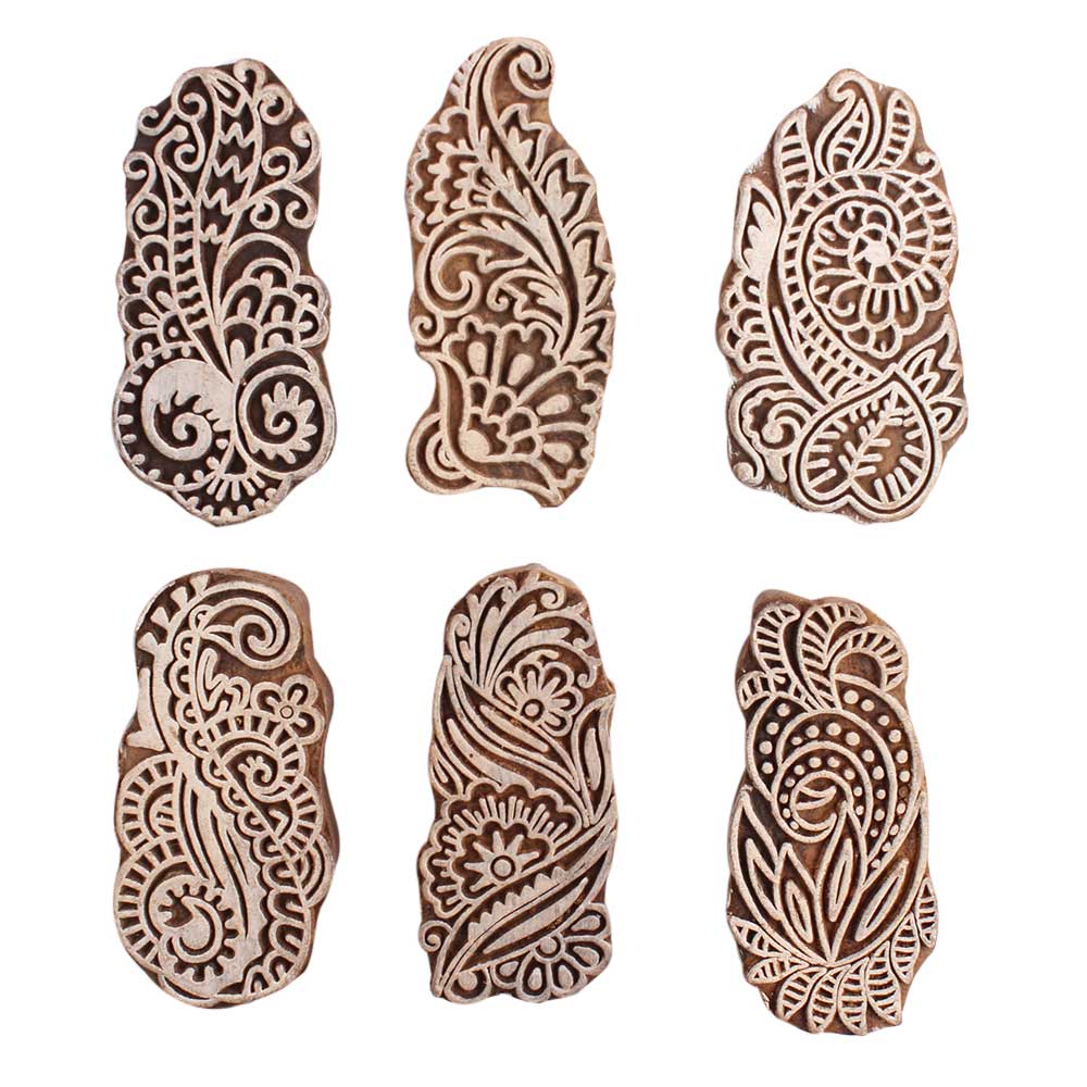 Set of 6 Piece New Mix Wooden Printing Block. Ideal for Using on Fabric, Paper, Canvas, etc. These Blocks can be use to Print with Oil Colors, Fabric Colors, Water Colors, Acrylic Colors and Vegetable Colors.