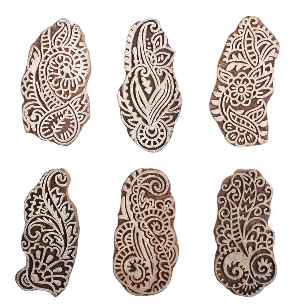 Set of 6 Piece New Mix Wooden Printing Block. Ideal for Using on Fabric, Paper, Canvas, etc. These Blocks can be use to Print with Oil Colors, Fabric Colors, Water Colors, Acrylic Colors and Vegetable Colors.