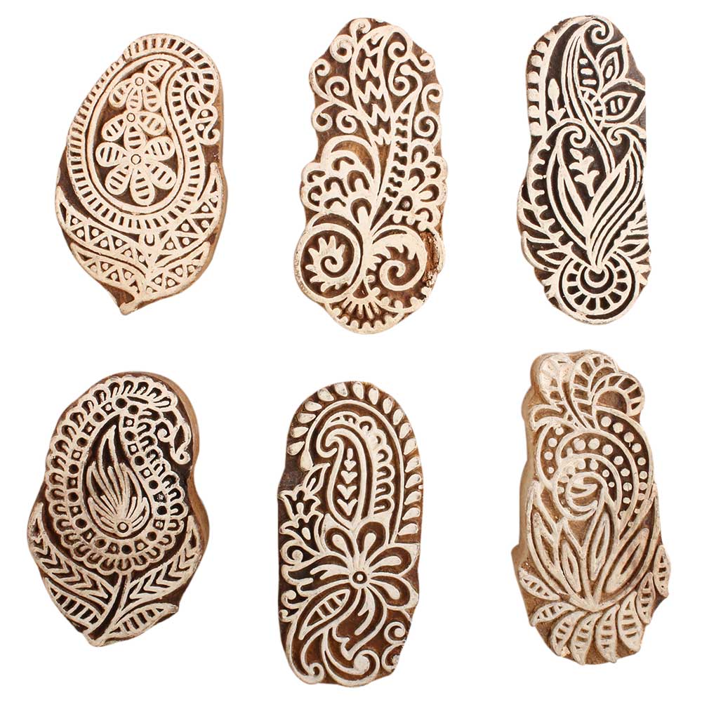 Set of 6 Piece New Mix Wooden Printing Block. Ideal for use on Fabric, Paper, Canvas, etc. These Blocks can be use to Print with Oil Colors, Fabric Colors, Water Colors, Acrylic Colors and Vegetable Colors.