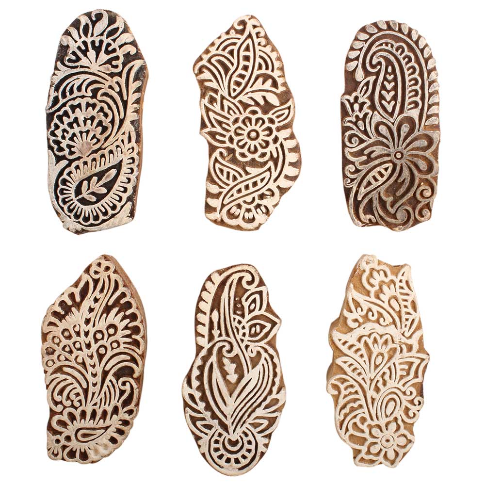 Set of 6 Piece New Mix Wooden Printing Block. Ideal for use on Fabric, Paper, Canvas, etc. These Blocks can be use to Print with Oil Colors, Fabric Colors, Water Colors, Acrylic Colors and Vegetable Colors.