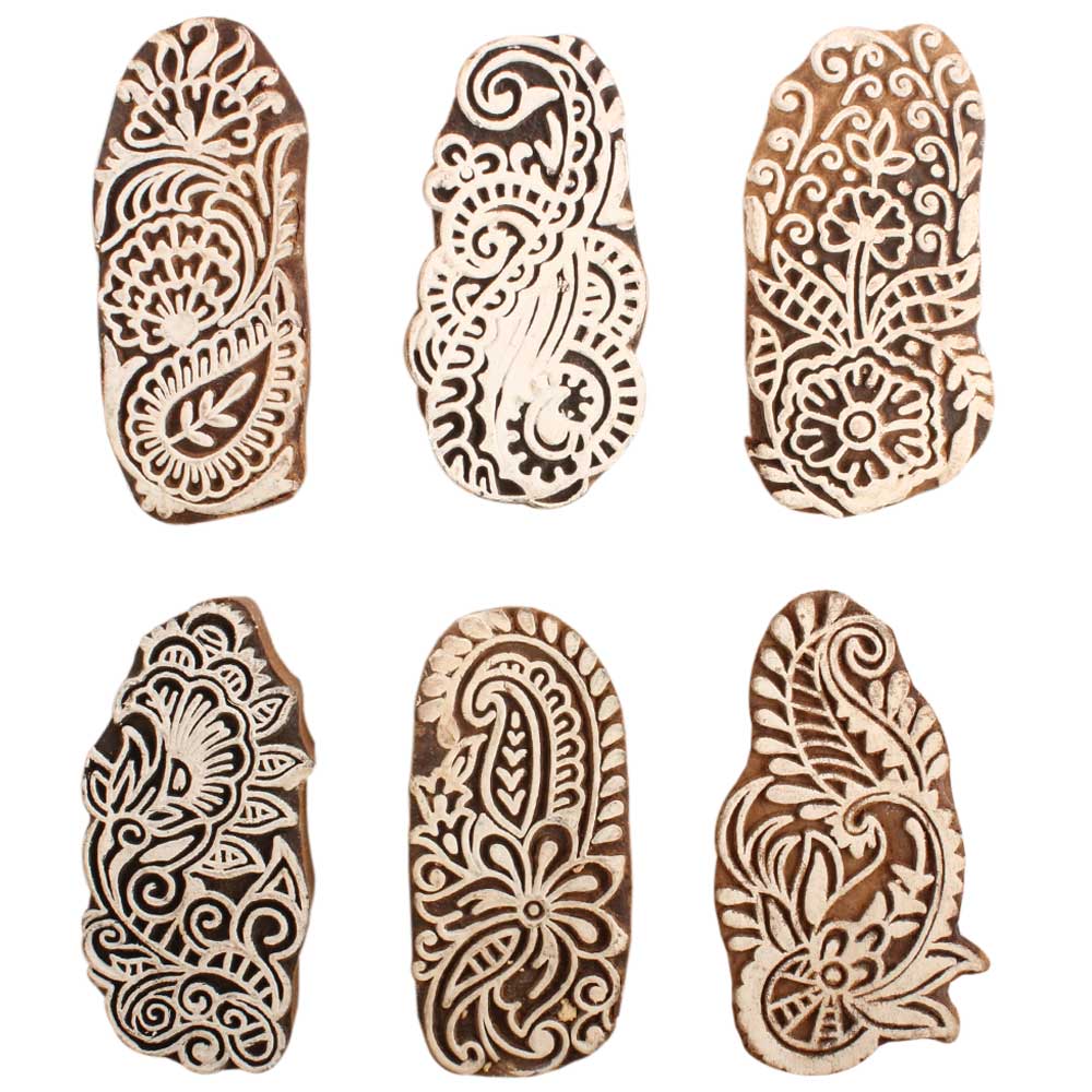 Set of 6 Piece New Mix Wooden Printing Block. Ideal for use on Fabric, Paper, Canvas, etc. These Blocks can be use to Print with Oil Colors, Fabric Colors, Water Colors, Acrylic Colors and Vegetable Colors.