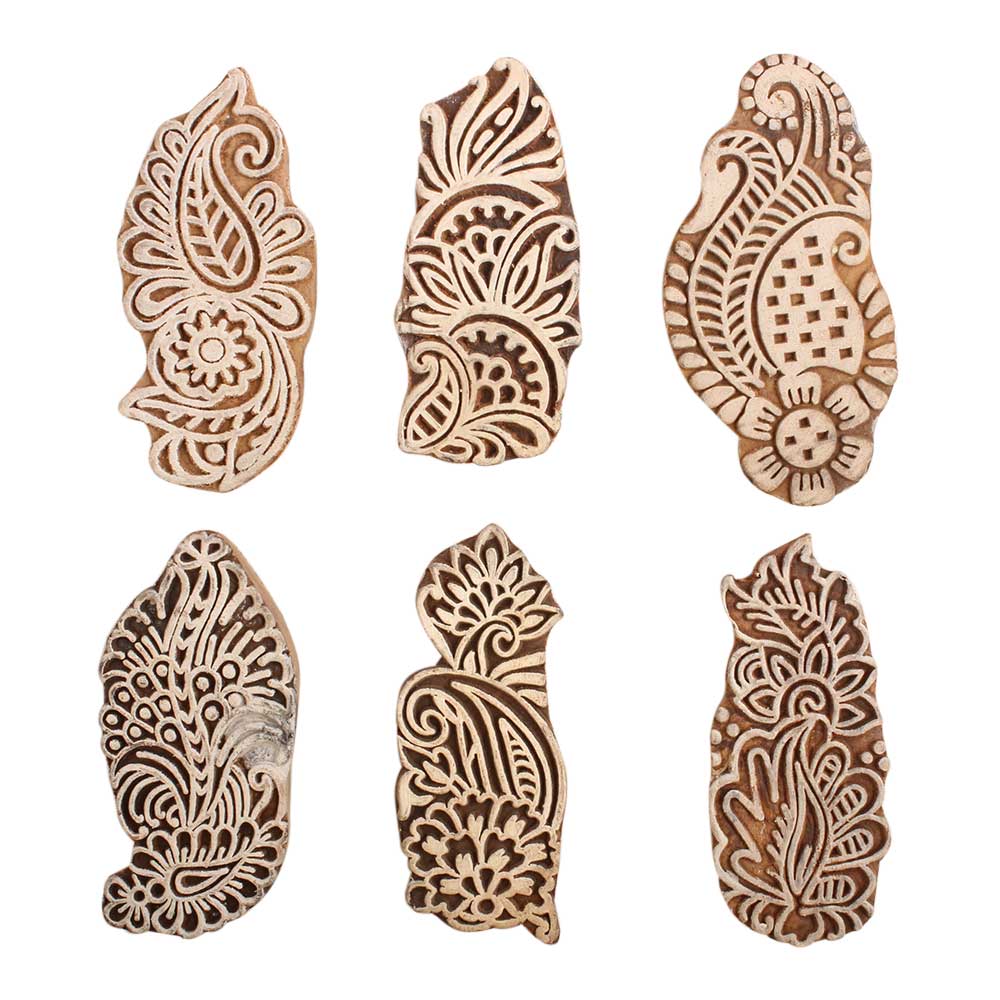 Set of 6 Piece New Mix Wooden Printing Block. Ideal for use on Fabric, Paper, Canvas, etc. These Blocks can be use to Print with Oil Colors, Fabric Colors, Water Colors, Acrylic Colors and Vegetable Colors.