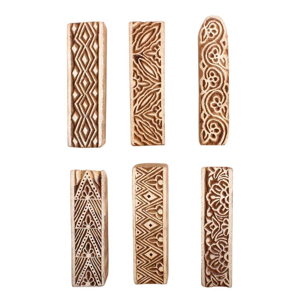 Set of 6 Piece New Mix Wooden Printing Block. Ideal for use on Fabric, Paper, Canvas, etc. These Blocks can be use to Print with Oil Colors, Fabric Colors, Water Colors, Acrylic Colors and Vegetable Colors.