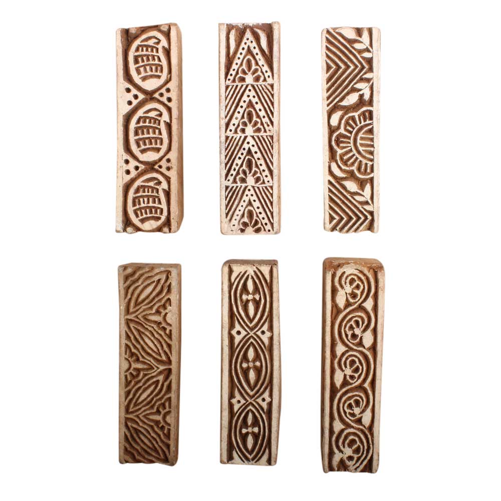 Set of 6 Piece New Mix Wooden Printing Block. Ideal for use on Fabric, Paper, Canvas, etc. These Blocks can be use to Print with Oil Colors, Fabric Colors, Water Colors, Acrylic Colors and Vegetable Colors.