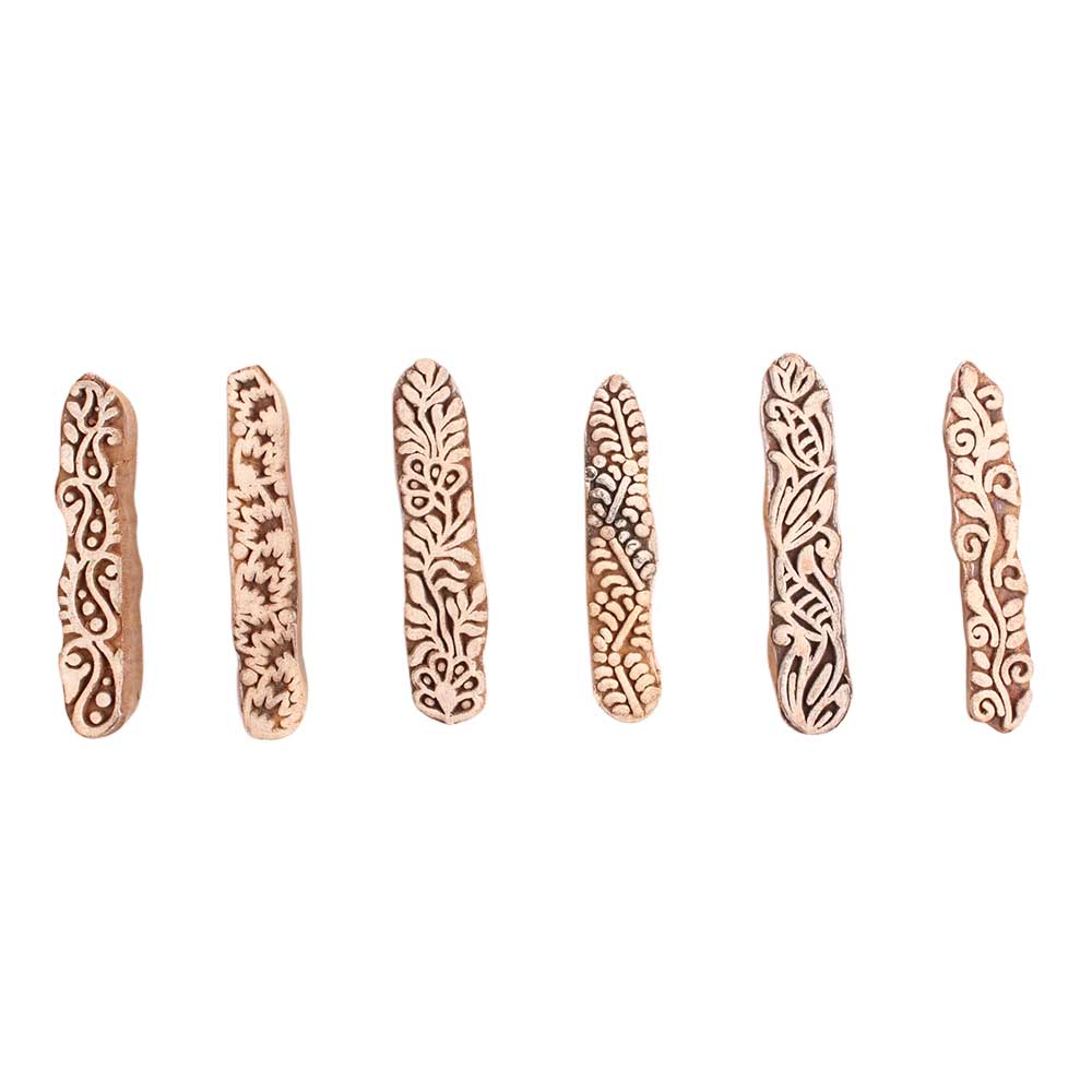 Set of 6 Piece New Mix Wooden Printing Block. Ideal for use on Fabric, Paper, Canvas, etc. These Blocks can be use to Print with Oil Colors, Fabric Colors, Water Colors, Acrylic Colors and Vegetable Colors.