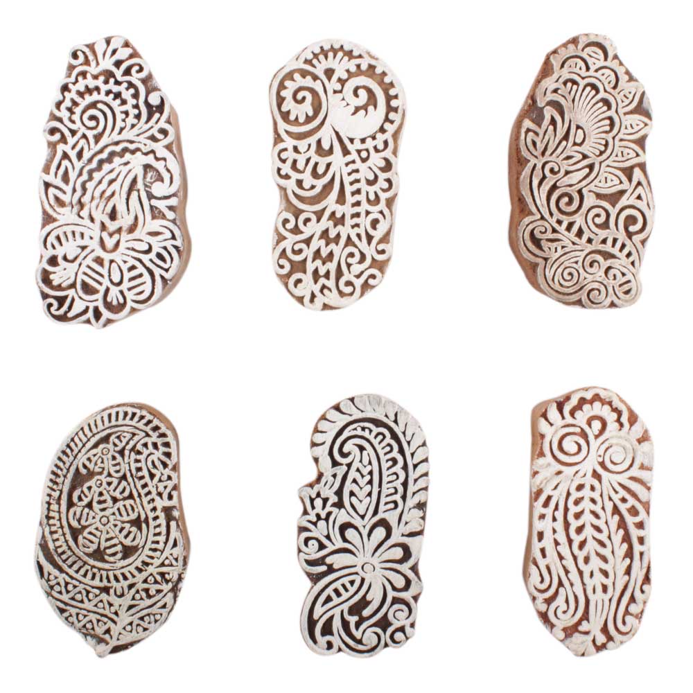 Set of 6 Piece New Mix Wooden Printing Block. Ideal for use on Fabric, Paper, Canvas, etc. These Blocks can be use to Print with Oil Colors, Fabric Colors, Water Colors, Acrylic Colors and Vegetable Colors.