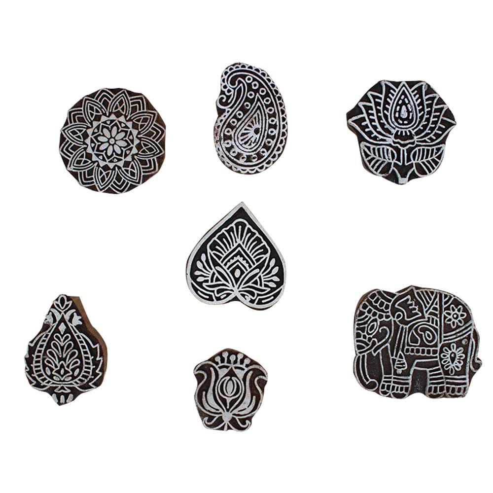 Set of 7 Piece New Mix Wooden Printing Block. Ideal for Using on Fabric, Paper, Canvas, etc. These Blocks can be use to Print with Oil Colors, Fabric Colors, Water Colors, Acrylic Colors and Vegetable Colors.