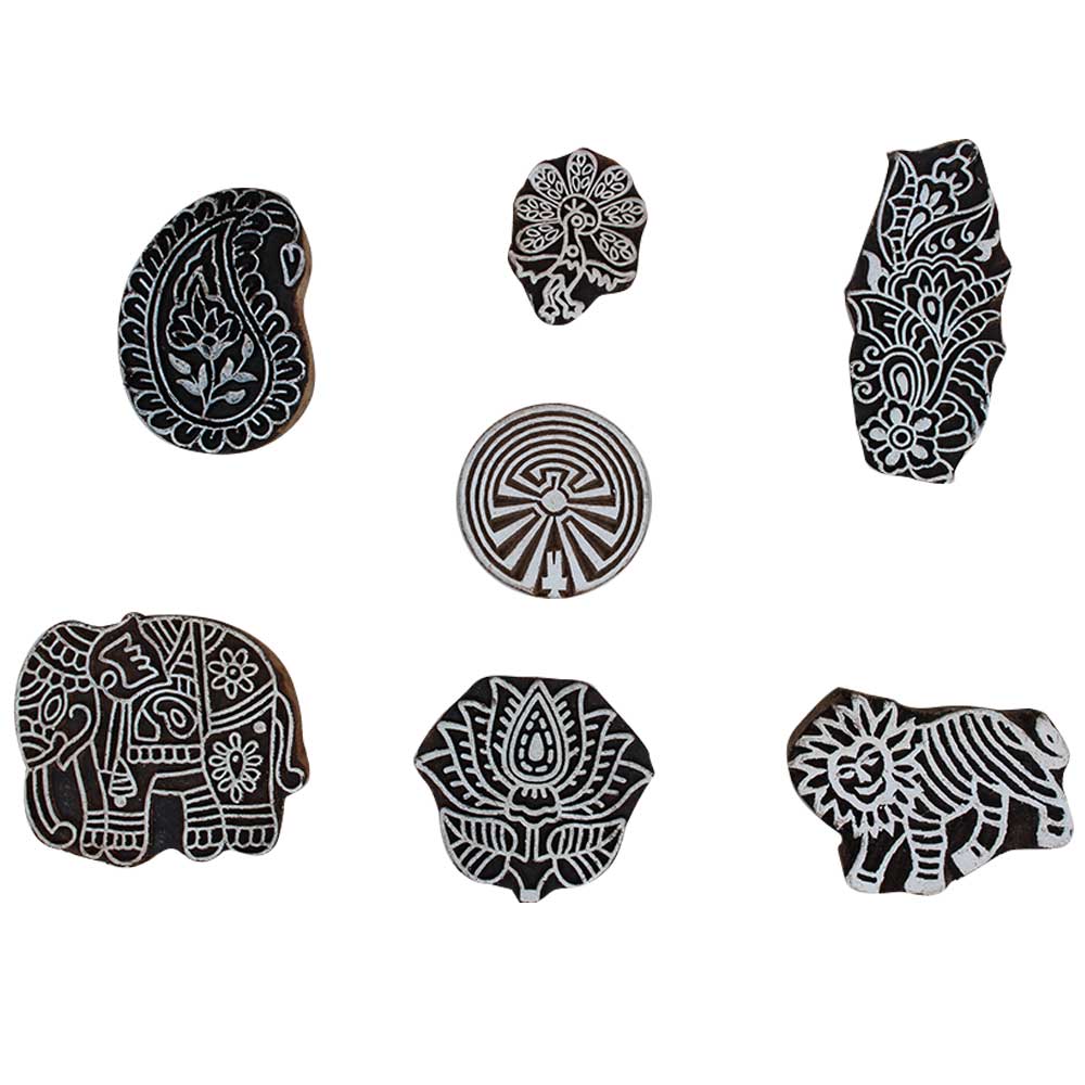 Set of 7 Piece New Mix Wooden Printing Block. Ideal for Using on Fabric, Paper, Canvas, etc. These Blocks can be use to Print with Oil Colors, Fabric Colors, Water Colors, Acrylic Colors and Vegetable Colors.