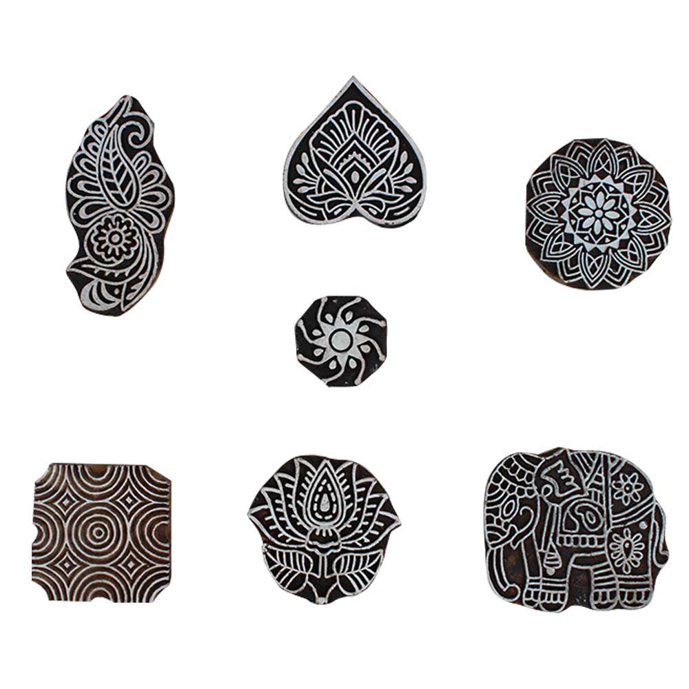 Set of 7 Piece New Mix Wooden Printing Block. Ideal for Using on Fabric, Paper, Canvas, etc. These Blocks can be use to Print with Oil Colors, Fabric Colors, Water Colors, Acrylic Colors and Vegetable Colors.