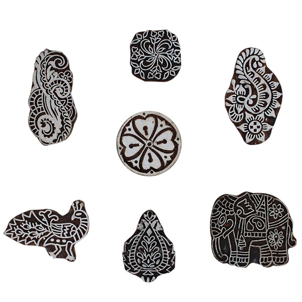 Set of 7 Piece New Mix Wooden Printing Block. Ideal for Using on Fabric, Paper, Canvas, etc. These Blocks can be use to Print with Oil Colors, Fabric Colors, Water Colors, Acrylic Colors and Vegetable Colors.