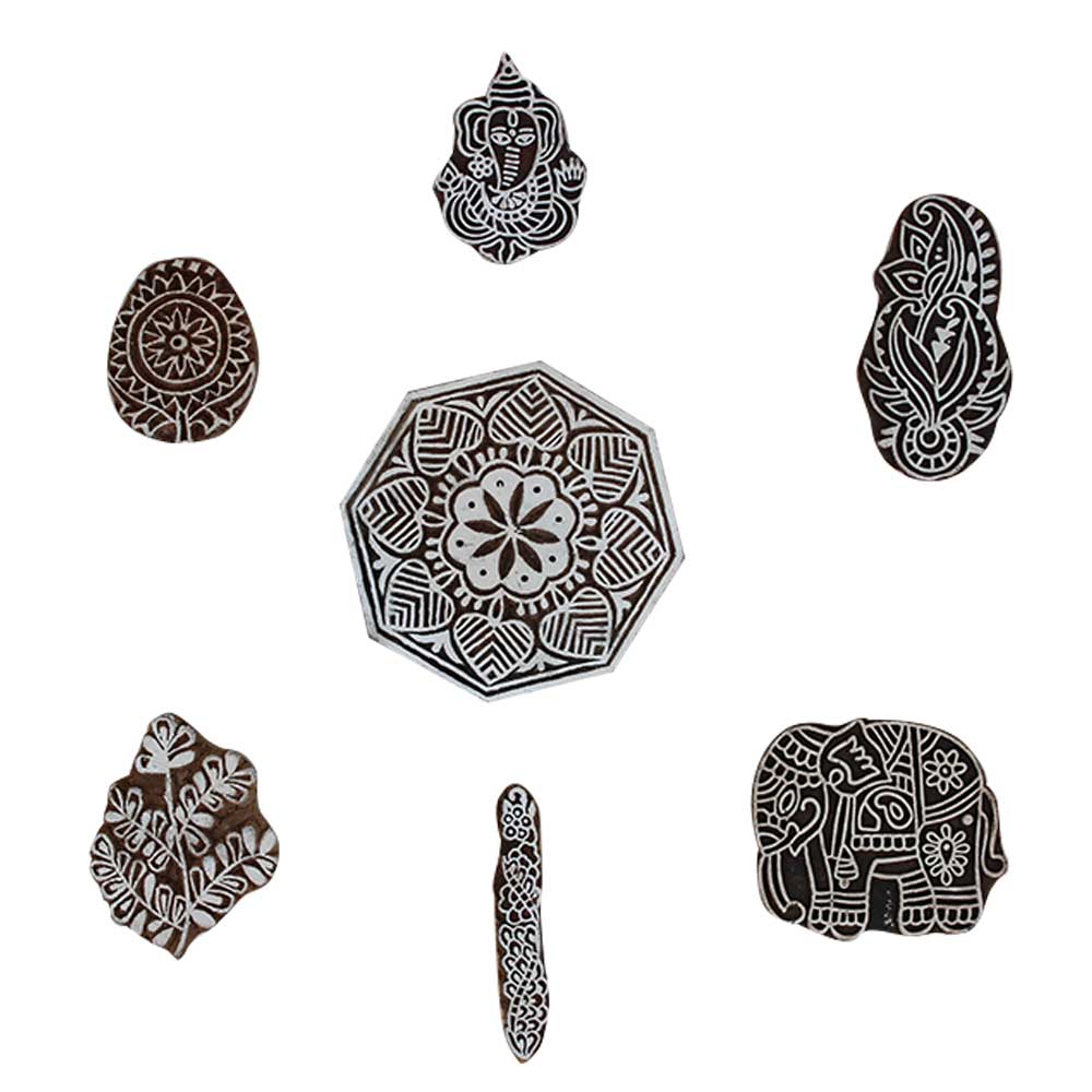 Set of 7 Piece New Mix Wooden Printing Block. Ideal for Using on Fabric, Paper, Canvas, etc. These Blocks can be use to Print with Oil Colors, Fabric Colors, Water Colors, Acrylic Colors and Vegetable Colors.