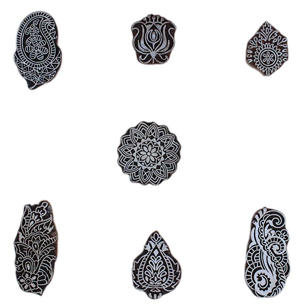 Set of 7 Piece New Mix Wooden Printing Block. Ideal for Using on Fabric, Paper, Canvas, etc. These Blocks can be use to Print with Oil Colors, Fabric Colors, Water Colors, Acrylic Colors and Vegetable Colors.
