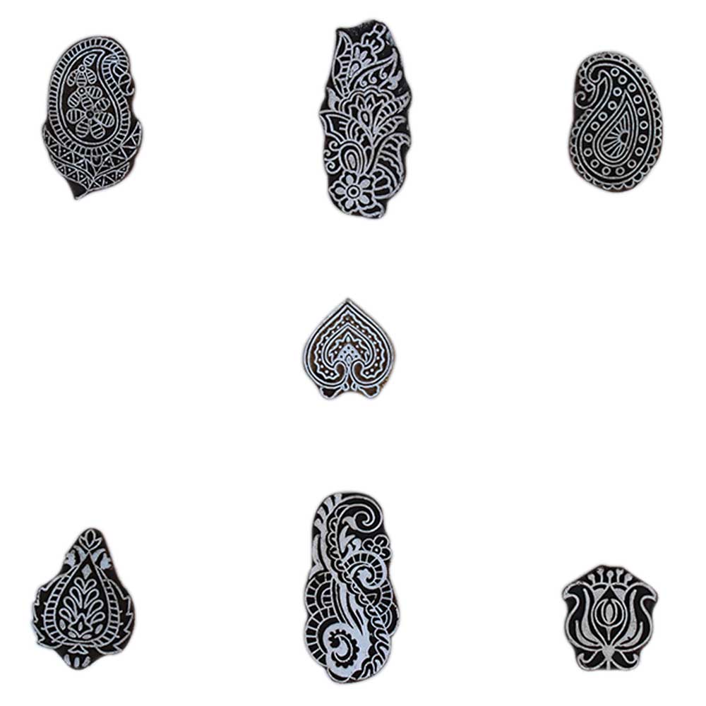 Set of 7 Piece New Mix Wooden Printing Block. Ideal for Using on Fabric, Paper, Canvas, etc. These Blocks can be use to Print with Oil Colors, Fabric Colors, Water Colors, Acrylic Colors and Vegetable Colors.
