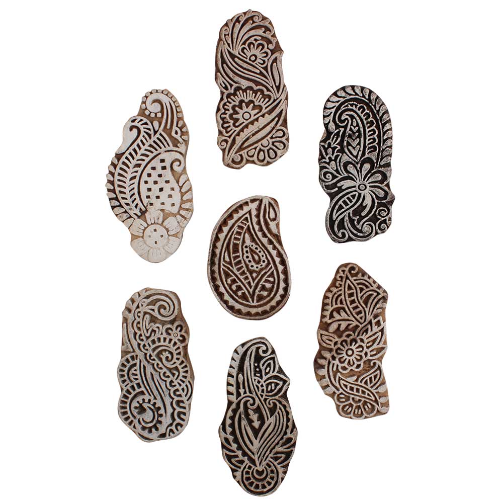 Set of 7 Piece New Mix Wooden Printing Block. Ideal for Using on Fabric, Paper, Canvas, etc. These Blocks can be use to Print with Oil Colors, Fabric Colors, Water Colors, Acrylic Colors and Vegetable Colors.