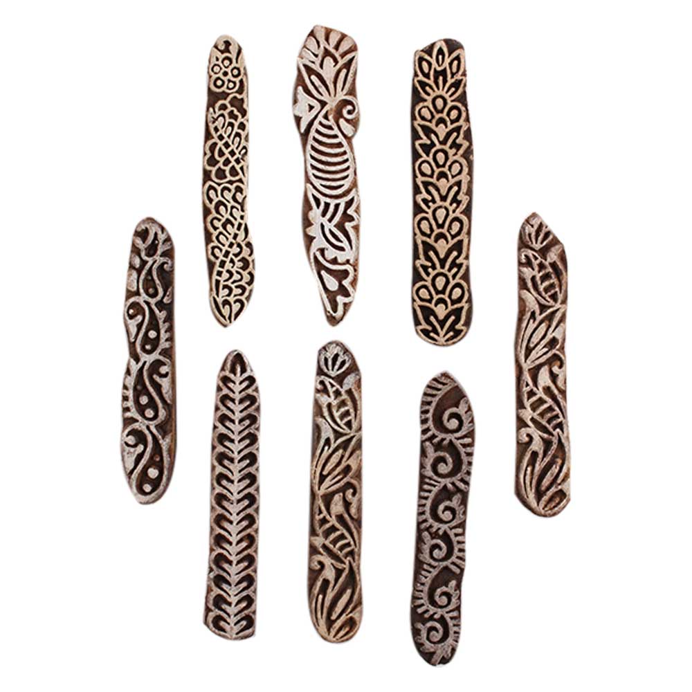 Set of 8 Piece New Mix Wooden Printing Block. Ideal for Using on Fabric, Paper, Canvas, etc. These Blocks can be use to Print with Oil Colors, Fabric Colors, Water Colors, Acrylic Colors and Vegetable Colors.