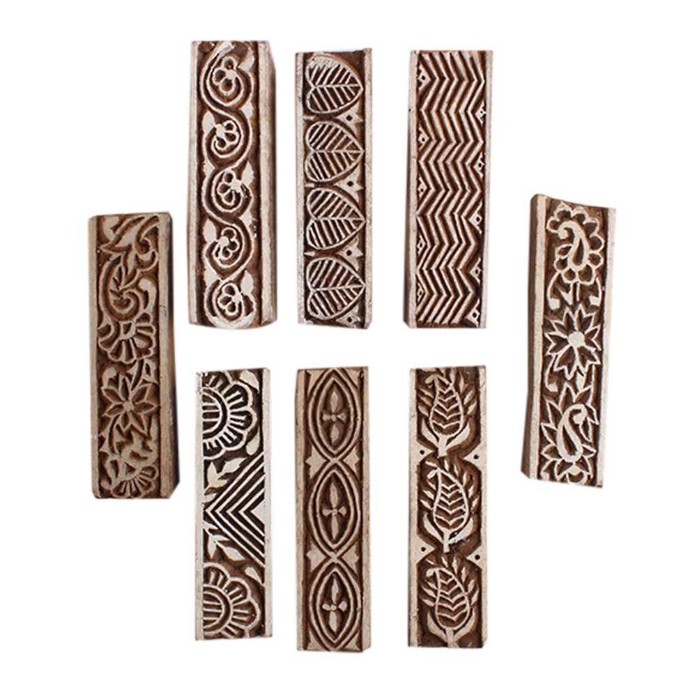 Set of 8 Piece New Mix Wooden Printing Block. Ideal for Using on Fabric, Paper, Canvas, etc. These Blocks can be use to Print with Oil Colors, Fabric Colors, Water Colors, Acrylic Colors and Vegetable Colors.