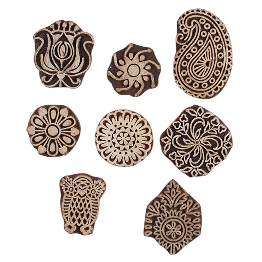 Set of 8 Piece New Mix Wooden Printing Block. Ideal for Using on Fabric, Paper, Canvas, etc. These Blocks can be use to Print with Oil Colors, Fabric Colors, Water Colors, Acrylic Colors and Vegetable Colors.