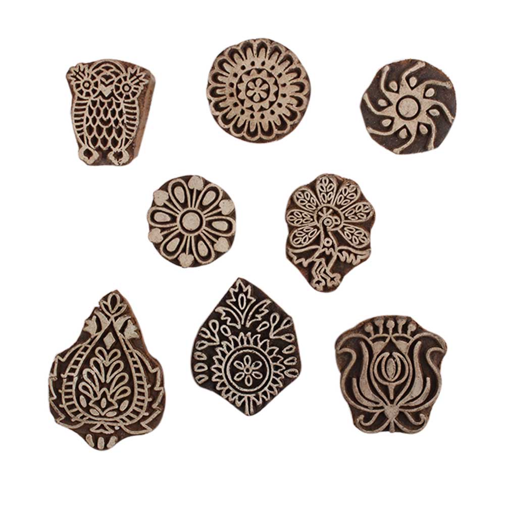 Set of 8 Piece New Mix Wooden Printing Block. Ideal for Using on Fabric, Paper, Canvas, etc. These Blocks can be use to Print with Oil Colors, Fabric Colors, Water Colors, Acrylic Colors and Vegetable Colors.