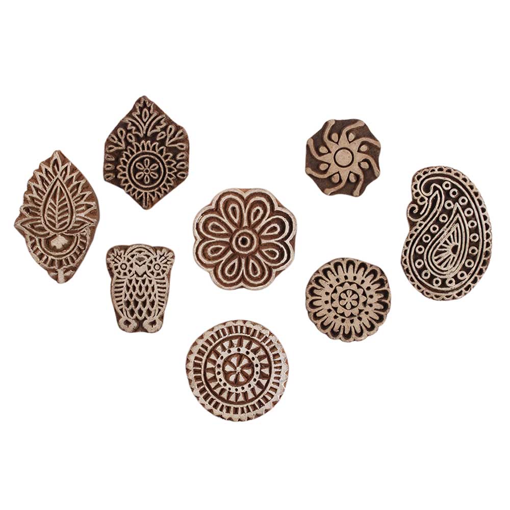 Set of 8 Piece New Mix Wooden Printing Block. Ideal for Using on Fabric, Paper, Canvas, etc. These Blocks can be use to Print with Oil Colors, Fabric Colors, Water Colors, Acrylic Colors and Vegetable Colors.