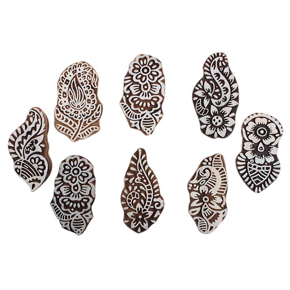 Set of 8 Piece New Mix Wooden Printing Block. Ideal for Using on Fabric, Paper, Canvas, etc. These Blocks can be use to Print with Oil Colors, Fabric Colors, Water Colors, Acrylic Colors and Vegetable Colors.