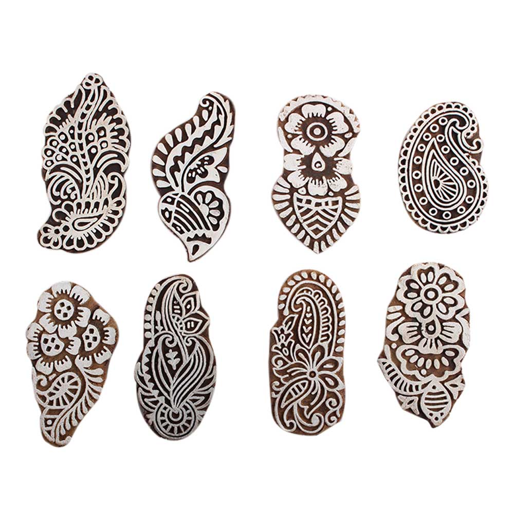 Set of 8 Piece New Mix Wooden Printing Block. Ideal for Using on Fabric, Paper, Canvas, etc. These Blocks can be use to Print with Oil Colors, Fabric Colors, Water Colors, Acrylic Colors and Vegetable Colors.