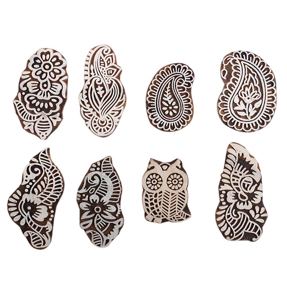 Set of 8 Piece New Mix Wooden Printing Block. Ideal for Using on Fabric, Paper, Canvas, etc. These Blocks can be use to Print with Oil Colors, Fabric Colors, Water Colors, Acrylic Colors and Vegetable Colors.