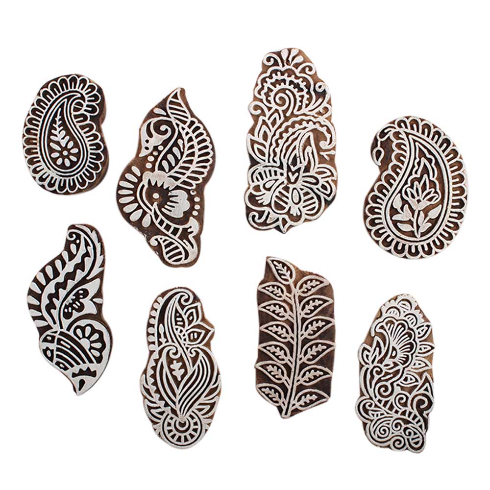 Set of 8 Piece New Mix Wooden Printing Block. Ideal for Using on Fabric, Paper, Canvas, etc. These Blocks can be use to Print with Oil Colors, Fabric Colors, Water Colors, Acrylic Colors and Vegetable Colors.