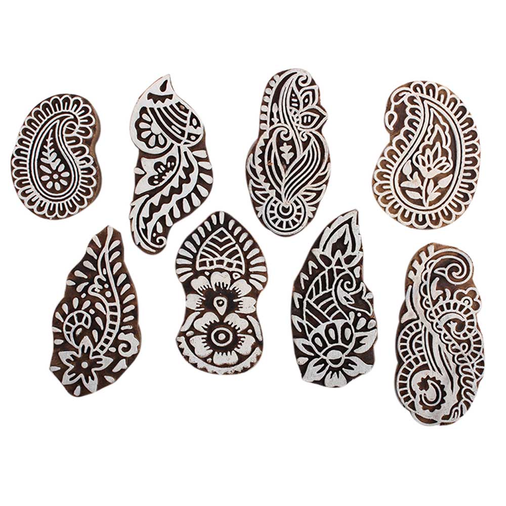 Set of 8 Piece New Mix Wooden Printing Block. Ideal for Using on Fabric, Paper, Canvas, etc. These Blocks can be use to Print with Oil Colors, Fabric Colors, Water Colors, Acrylic Colors and Vegetable Colors.