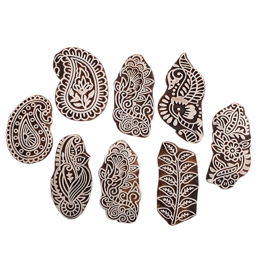 Set of 8 Piece New Mix Wooden Printing Block. Ideal for Using on Fabric, Paper, Canvas, etc. These Blocks can be use to Print with Oil Colors, Fabric Colors, Water Colors, Acrylic Colors and Vegetable Colors.