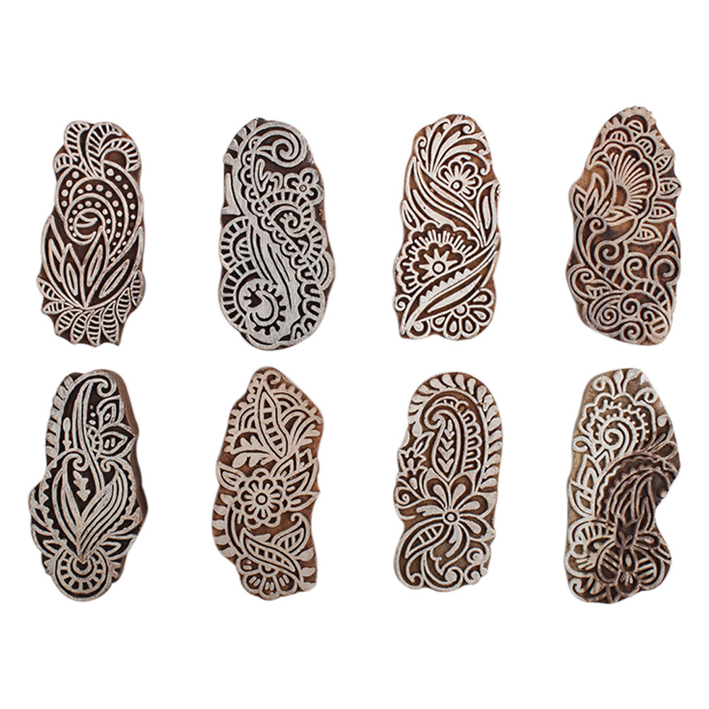 Set of 8 Piece New Mix Wooden Printing Block. Ideal for Using on Fabric, Paper, Canvas, etc. These Blocks can be use to Print with Oil Colors, Fabric Colors, Water Colors, Acrylic Colors and Vegetable Colors.