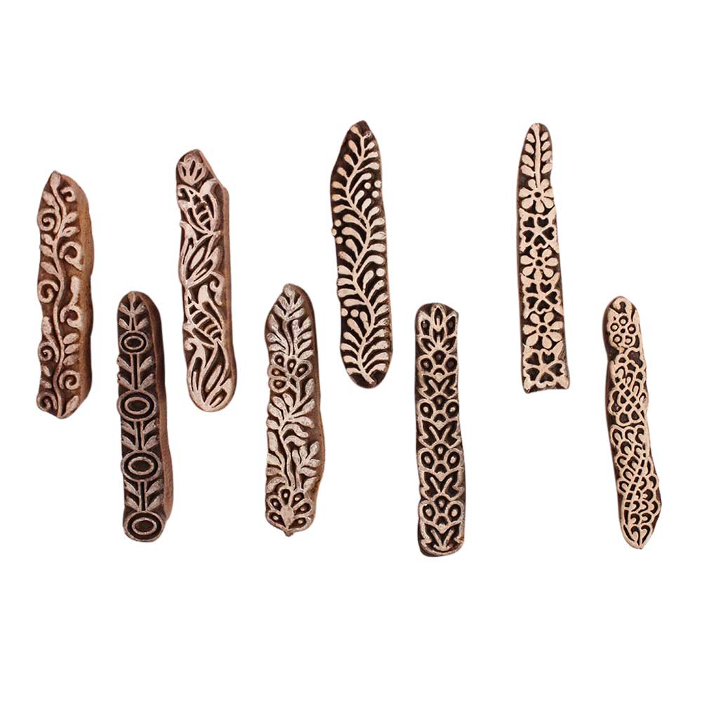 Set of 8 Piece New Mix Wooden Printing Block. Ideal for Using on Fabric, Paper, Canvas, etc. These Blocks can be use to Print with Oil Colors, Fabric Colors, Water Colors, Acrylic Colors and Vegetable Colors.